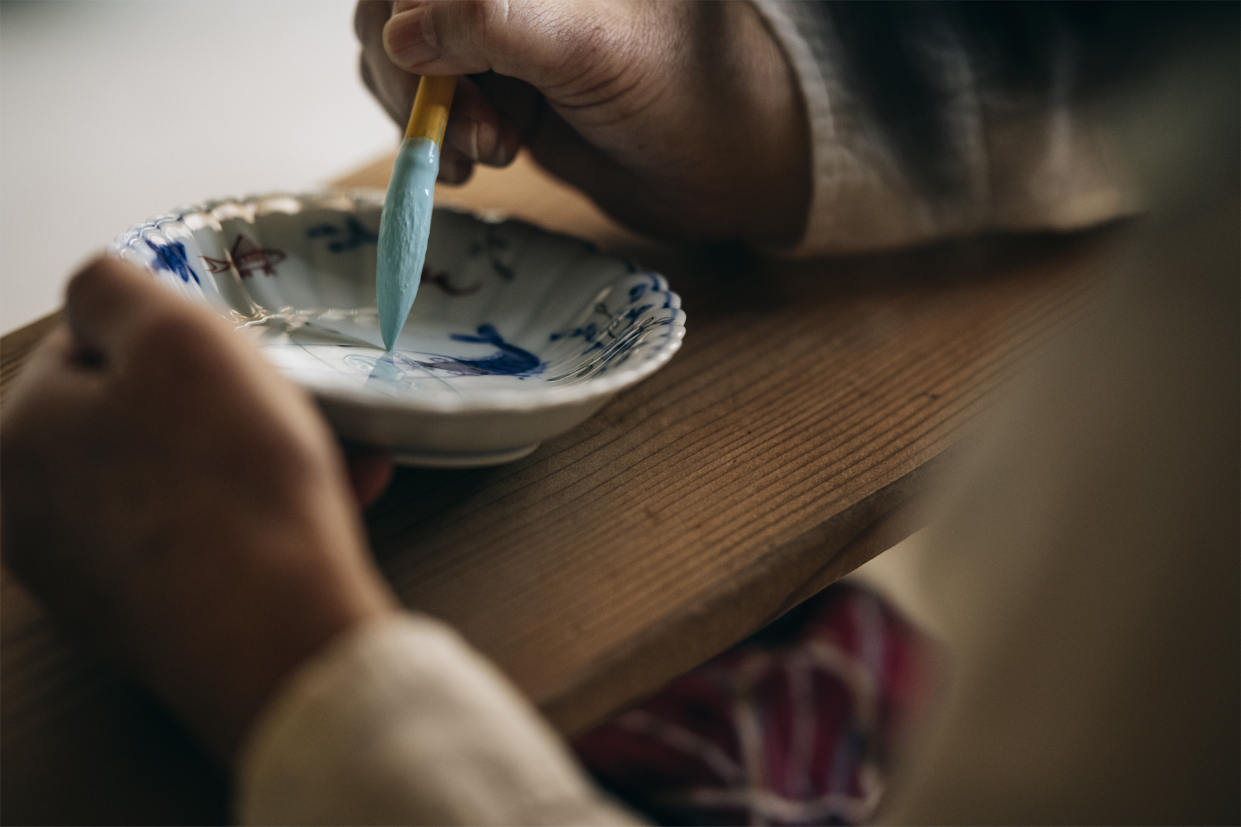 器皿皆為職人手工繪製,以精湛的手藝與控色技巧,使每一件都充滿獨一無二的染付手繪溫度,帶來優雅的細節與實用性,致力傳達使用溪山窯的器皿能讓使用者的日常生活更加舒心,富有生活樂趣。