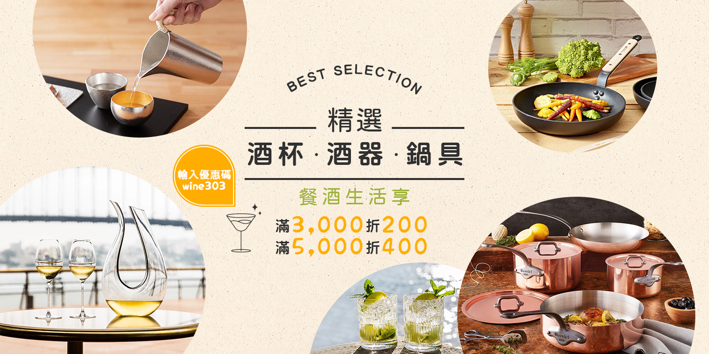 輸入優惠碼wine303,指定酒杯酒器鍋具🍷滿3,000折200🥘滿5,000折400🥂