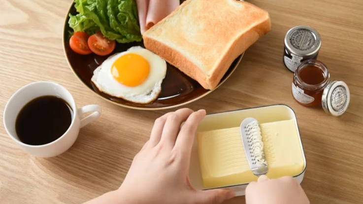 剛從冰箱裡拿出來的奶油,用一般奶油刀塗抹在吐司上很難融化,帶有刨絲器的奶油刀可以避免這種情形。把奶油削成細絲狀,然後薄薄地塗在吐司上,您可以減少卡路里攝入量。手柄的設計比普通奶油刀更傾斜, 除了奶油之外,您還可以將起司/巧克力或其他食品削成細絲,用於烹飪和製作甜點。 新潟縣的燕三条製造,安心信賴的日本製商品。