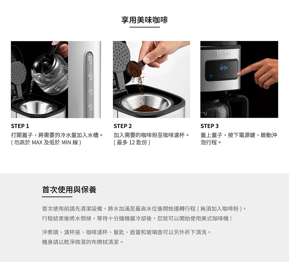 1.5公升大容量,最多可沖泡12匙份咖啡量。
