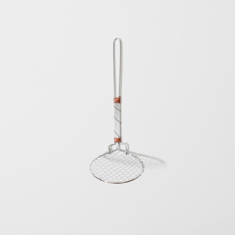 細密金屬網撈勺,輕柔承托豆腐、蔬菜或炸物,不易破碎